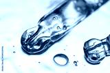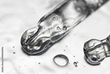 Two pipettes on transparent serum macro view from above.