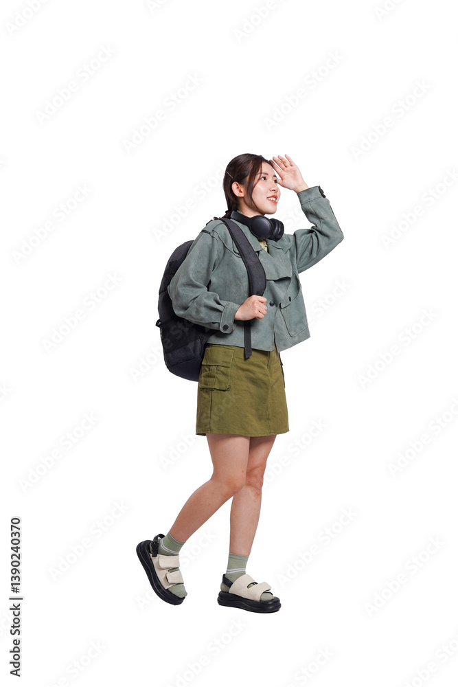 Portrait of Asian female student posing dynamically on white background