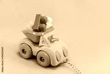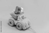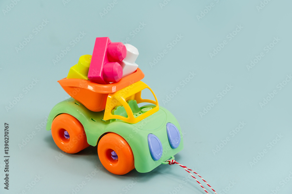 A toy truck with construction blocks in the back on an isolated background, a place for text