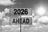 The new year 2026 or straightforward concept. Number 2026 written on the road in forest. planning and challenge, business strategy, opportunity, hope, exit, and new life.