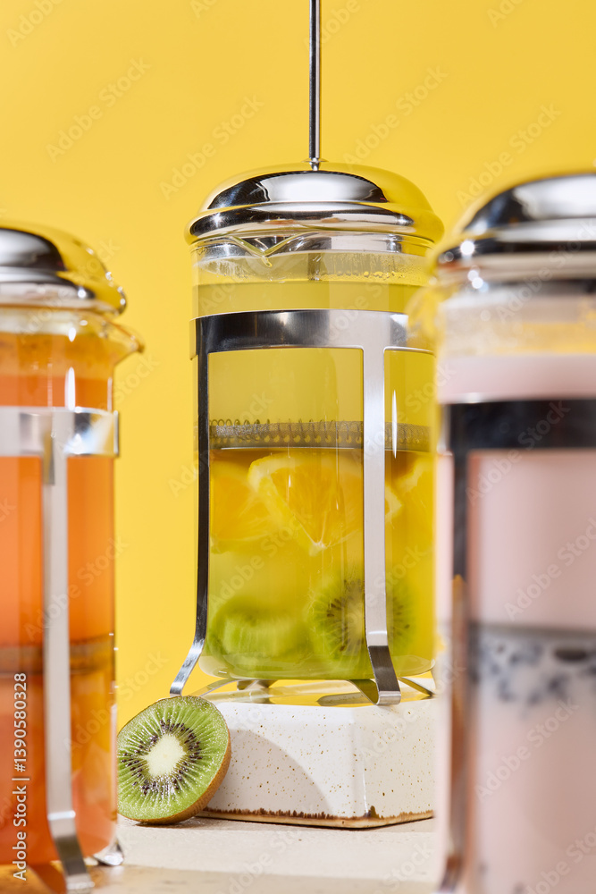 Vibrant Fruit Tea Brew Collection Against Bright Yellow Background