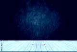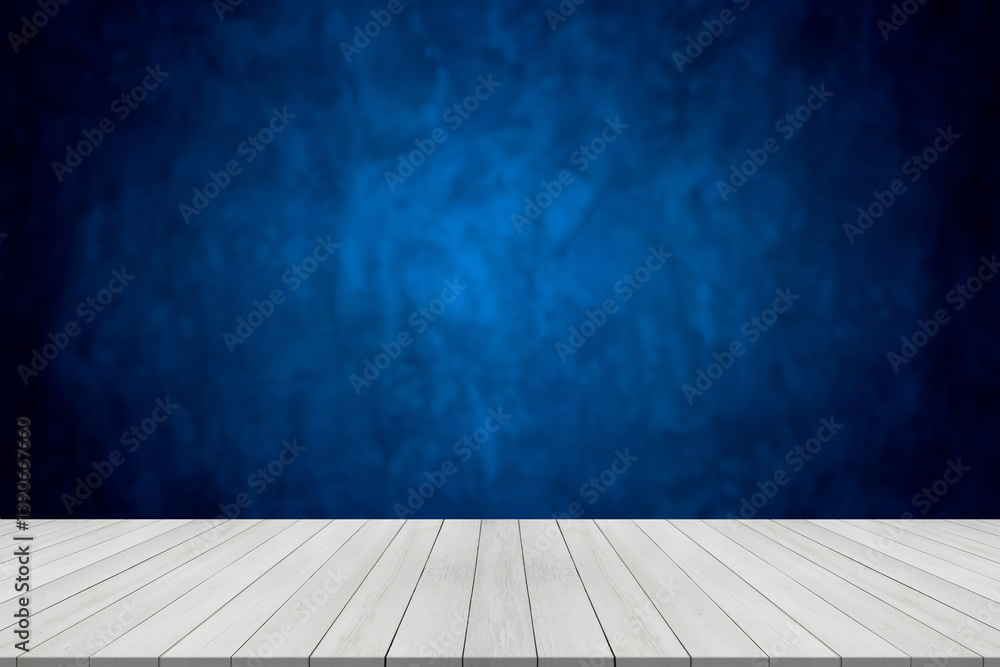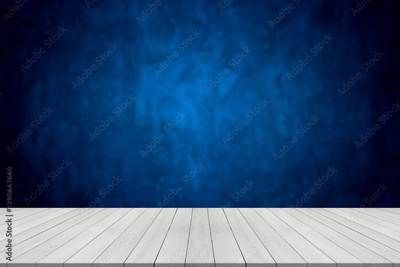 Empty table on dark blue texture wall background. Composition with organic shadow on the wall and light reflections. Mock up for presentation, branding products, cosmetics food or jewelry.