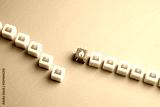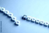Supply chain disruption concept. A row of boxes is interrupted by an obstacle, symbolizing delays in goods delivery due to tariffs, regulations, or geopolitical issues.