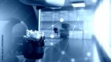 3D scanner in a dental laboratory. 3D scanner creates a virtual image of denture. Three-dimensional picture of denture on computer screen. Work equipment of prosthetist. Dental prosthetist scanner.