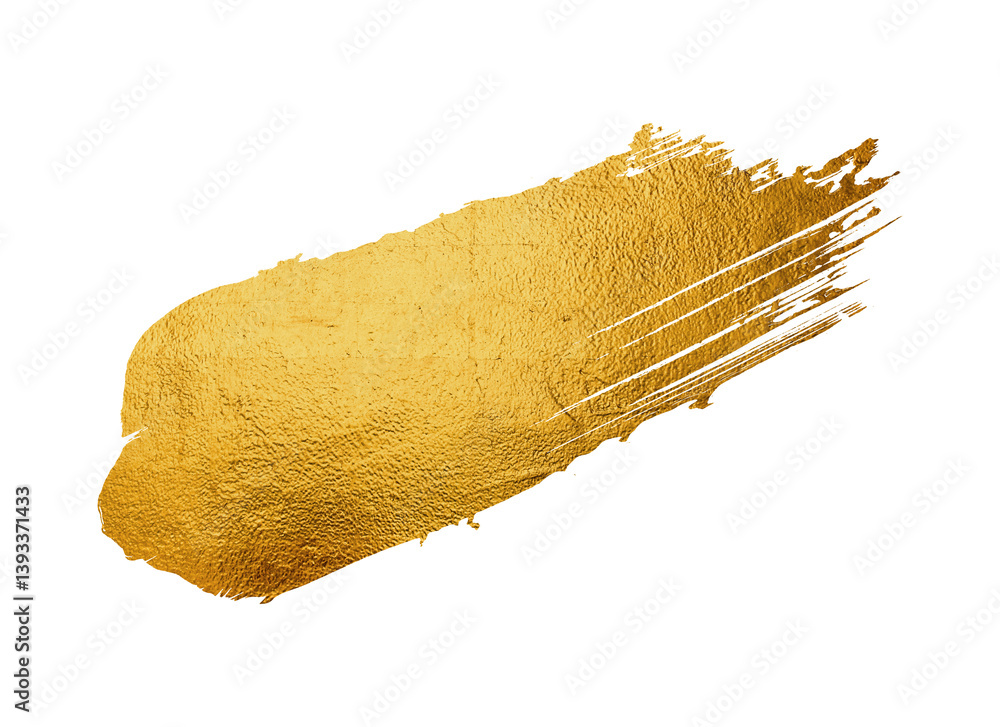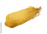 Gold (bronze) glittering color smear brush stroke stain blot on white background. Abstract Paint texture.
