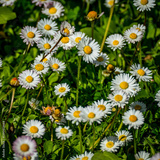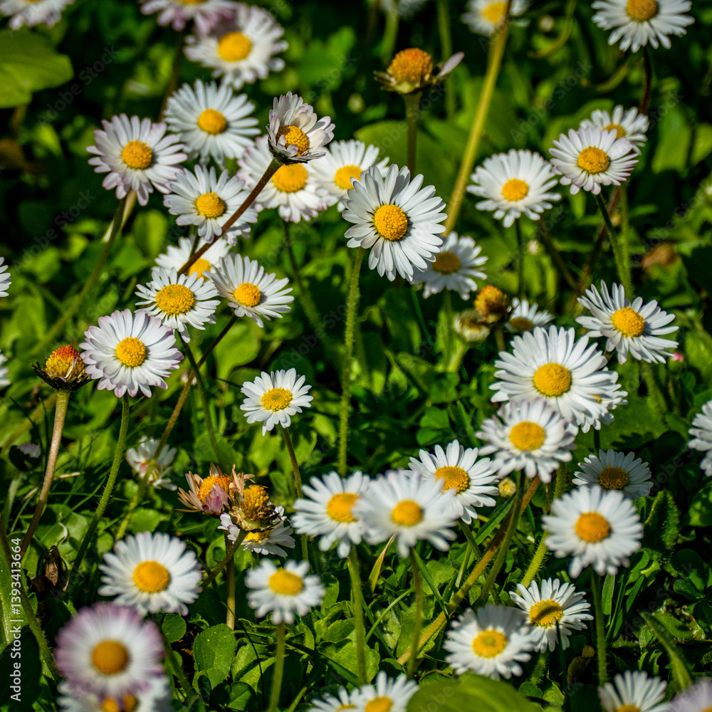 Viele Gänseblümchen auf einem Rasen