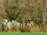 Hoch und Jägersitz am Waldrand im Frühjahr