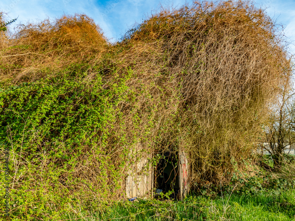Völlig zugewachsenes Gartenhäuschen