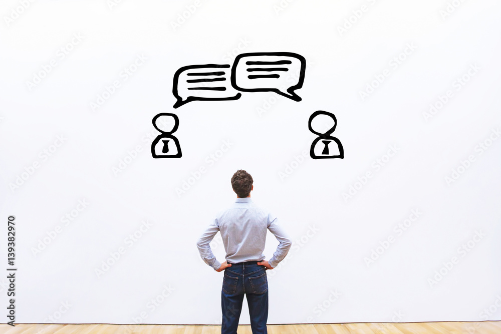 negotiation, dialog or dispute concept, discussion of business people with different opinions, sketch