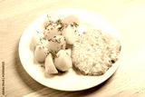 A delectable plate showcases tender boiled potatoes paired with a cheesy fish fillet