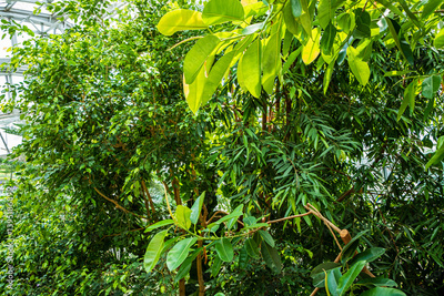 Vibrant leaves and diverse plants create a serene atmosphere in a lush indoor garden