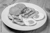 Delicious breakfast with sunny-side-up eggs, crispy bacon, and perfect hash browns