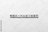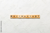 reflexology word written on wood block. reflexology text on cement table for your desing, concept