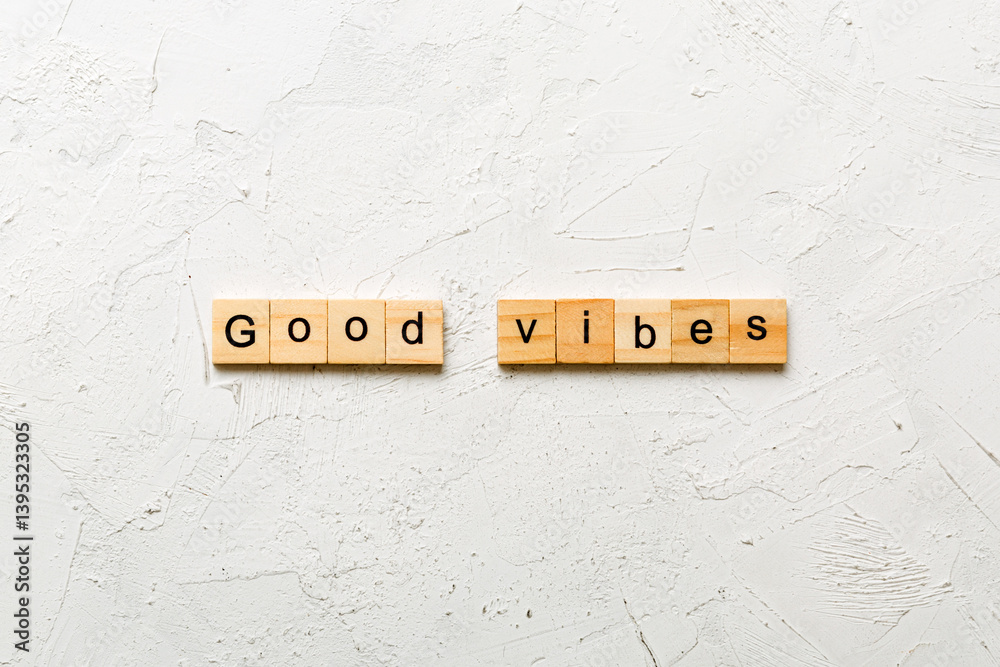 good vibes word written on wood block. good vibes text on table, concept