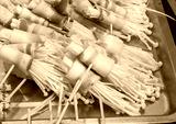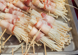 Barbecue skewers with sausage and mushrooms, Grill food image