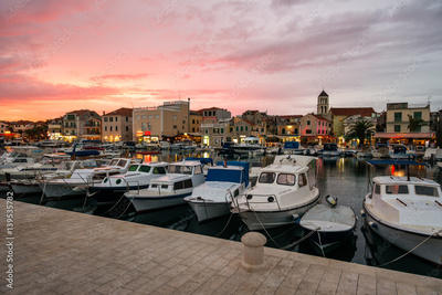Beautiful sunset over old croatian town