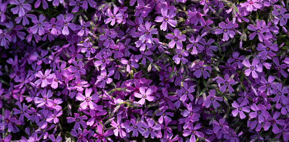 Beautiful floral background of purple forest flowers. Spring. Summer and spring fantasy flower background.