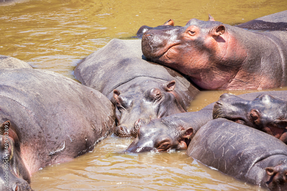 Halloween Theme. Young witch in striped sweater and black hat juggles with pumpkins against yellow background. Free space for your text