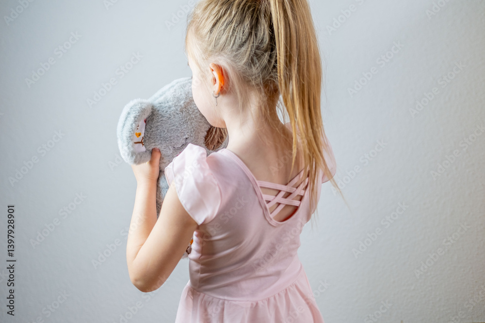 happy sweet girl finds comfort in toy, emphasizing importance emotional support in early years, emotional attachment, childhood psychology