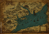 Aged Coastal Map Illustration with Ships and Castles