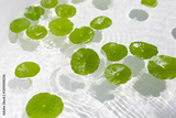 Fresh green leaves of Centella asiatica or gotu kola or asiatic pennywort, floating on water. It is a medicinal herb with many health benefits.