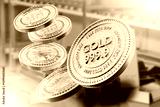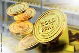 Shiny gold investment coins marked 999.9 float above stacked gold bars in a secure vault, symbolizing financial growth and precious metal investment. 3d image