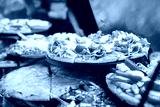 True italian pizza in the showcase of pizzeria in Florence, Italy. Food background.
