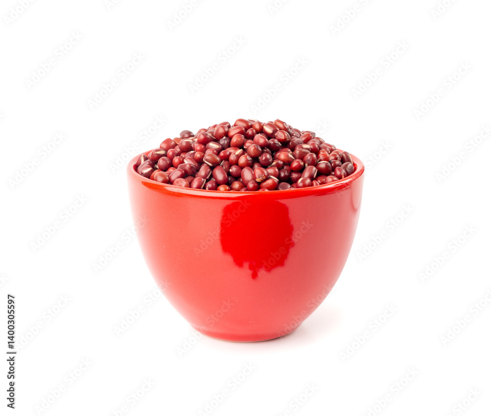 Red adzuki beans isolated, raw azuki bean pile, Vigna angularis legume seeds, dry red mung bean