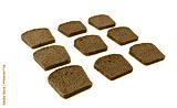 Black rye bread isolated, dark brown sliced loaf, sourdough borodinsky rugbrod square slices