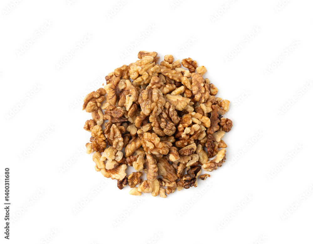 Chopped wallnut , broken roasted walnuts powder, heap of nuts crumbs, whole kernel pieces