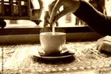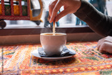 Masala chai an Indian restaurant, spiced milk tea, traditional cardamom hot drink with spices