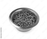 Dry pet food, dog kibble pile, puppy pellets, small canine protein croquette meal, animal food