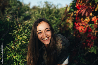 the joyful girl in a garden