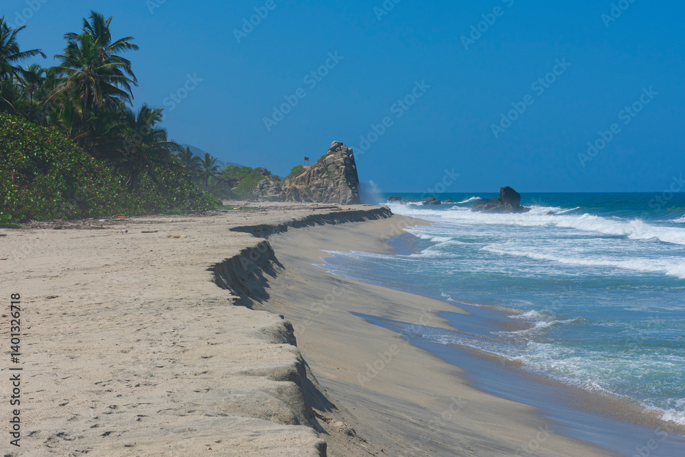 Beautiful wild beach in the natural park on the northern coast of Colombia.