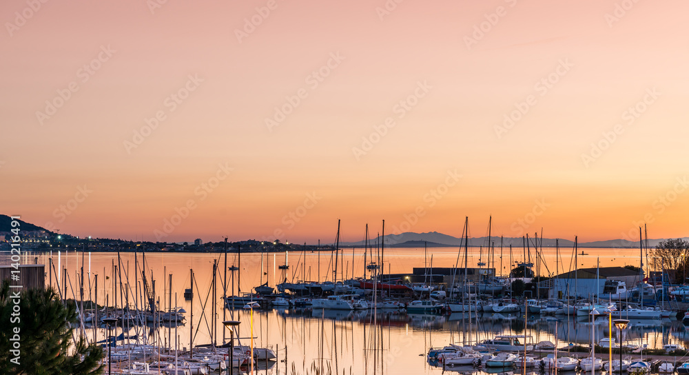 Coucher de soleil sur l'étang de Thau, Occitanie, France