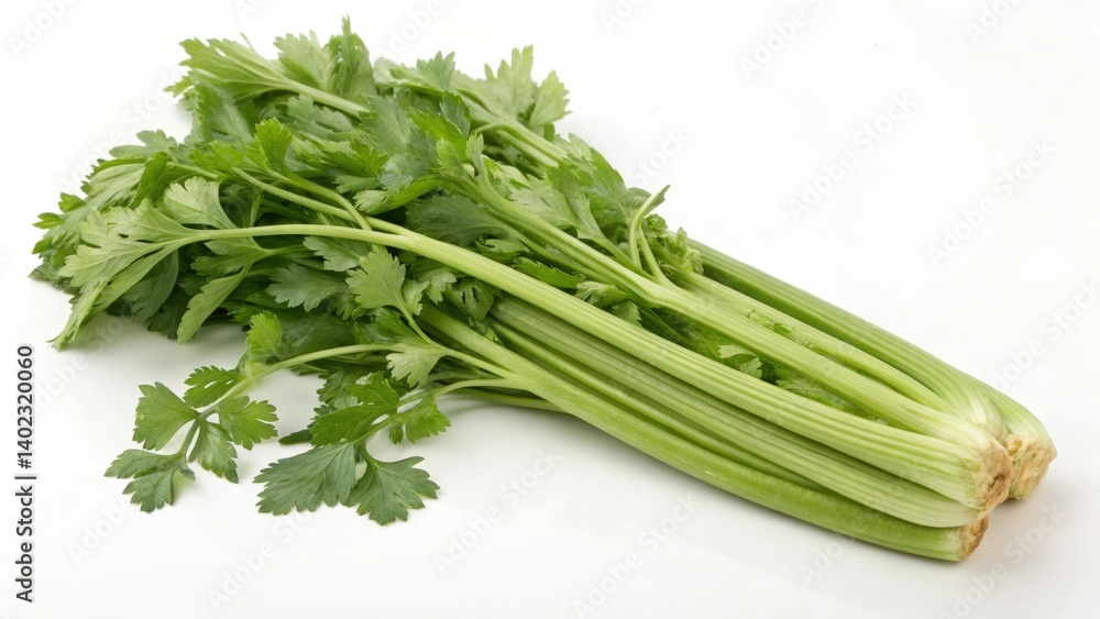 Fresh and vibrant bunch of celerey on a clean white background ready for delicious meals
