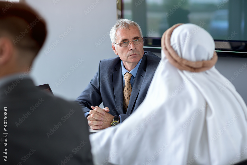 Manager have meeting with Arabian partner.