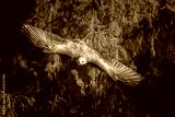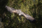 Majestic bird of prey soaring through forest