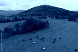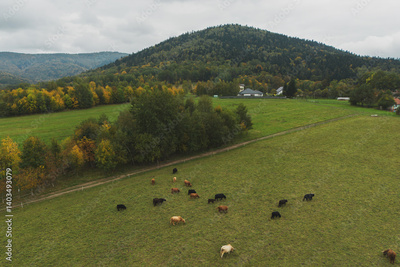 Herd of cows on green pasture.