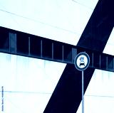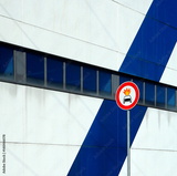 Modern minimalist facade with the street sign "no flammable materials on car" in this road