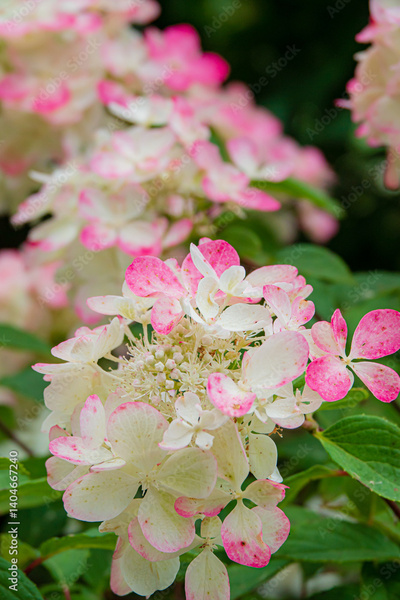Vibrant blooms of pink and white hydrangeas showcase nature's artistry in the garden