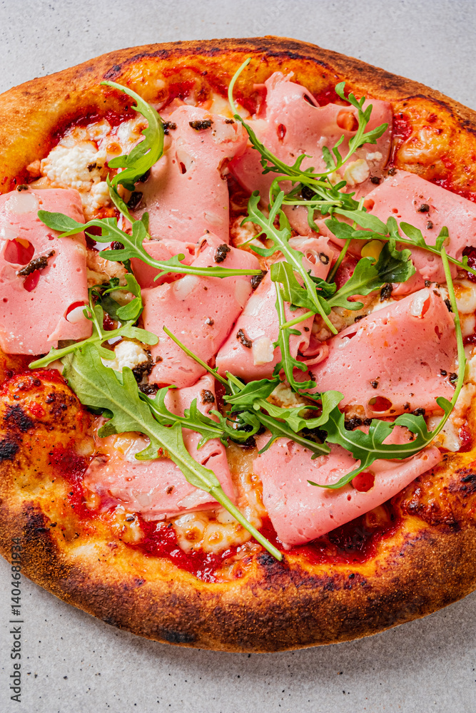 Brightly colored dish showcases delicious toppings of meat and greens atop a golden crust