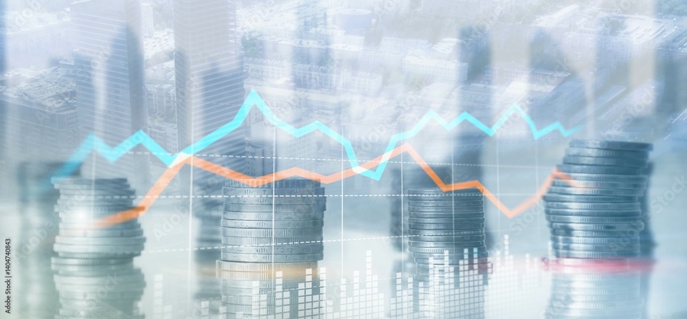 Universal Financial stock trading graph chart diagram business finance concept double exposure mixed media