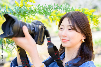 カメラを構える日本人女性