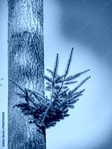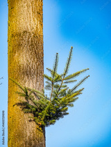 Neue Triebe am Stamm eines Nadelbaums im Frühjahr