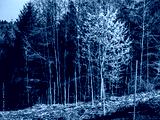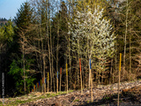 Wiederaufforstung im Frühjahr mit bunten Markierungsstöcken