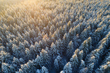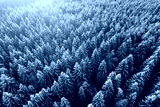 Snowy tree tops in sunlight