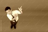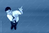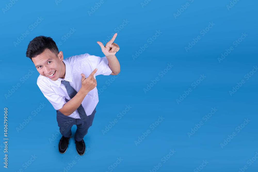 High Angle Shot of Indonesian High School Student Pointing Fingers Aside to Copy Space