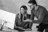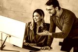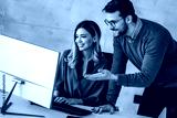 Diverse group of businesspeople discussing charts during a meeting together in a modern office