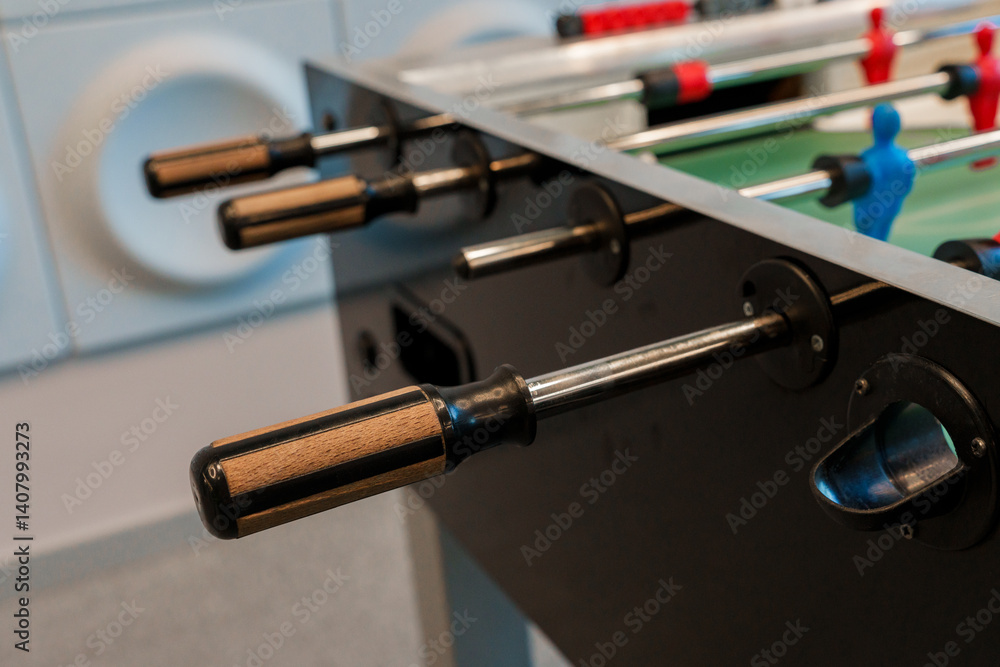 A man practices kicker table football throws, Recreation and leisure concept. Saint Petersburg, Russia - 6 Apr 2025